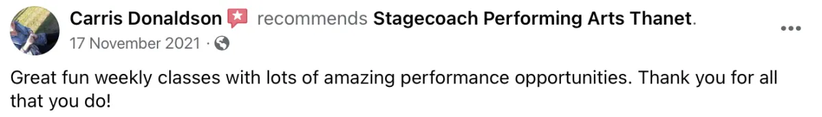 Develop their skills and confidence: By taking part in the classes and activities, your child will develop their skills and gain confidence in their abilities, which will help them excel both on and off the stage.